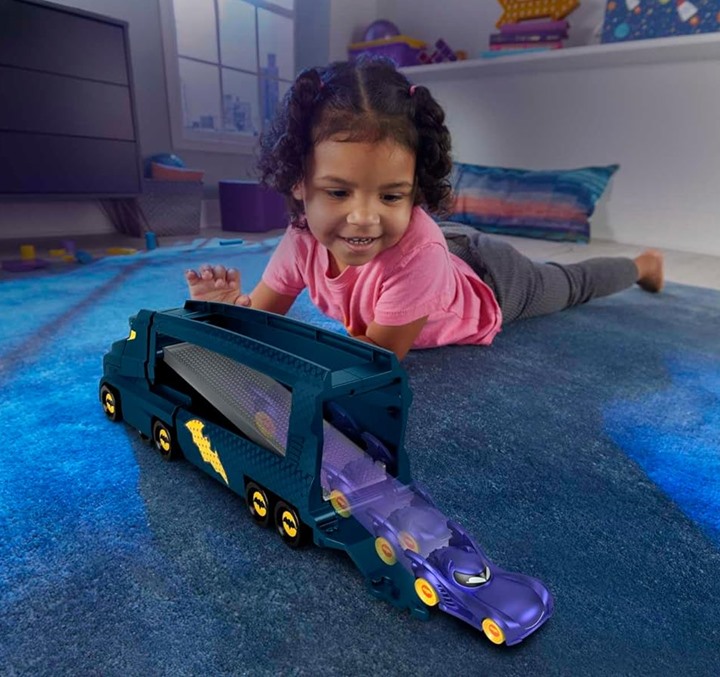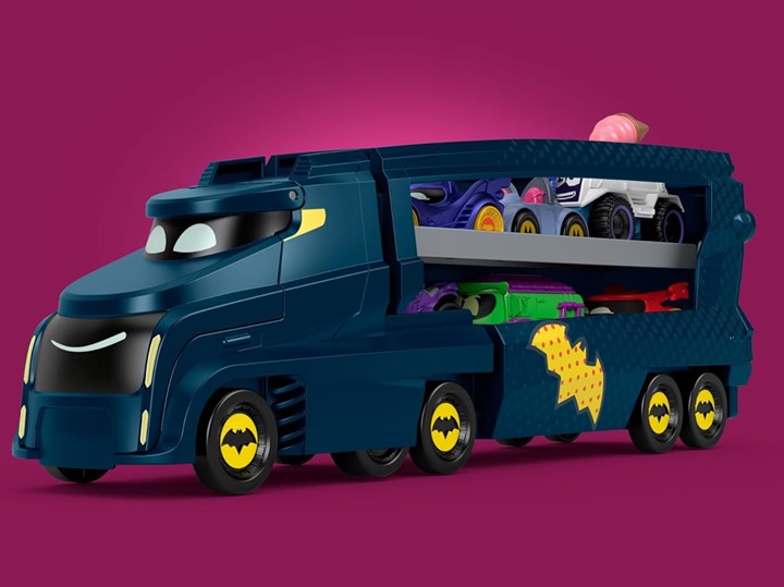Tento rolovací transportér pojme až sedem vozidiel v mierke 1:55 a je dodávaný s liatym kovovým Bam the Batmobile. Deti môžu otvoriť bočnú stranu nosiča, prednú kabínu a zadnú rampu na nakladanie a vykladanie! Deti môžu zbierať ďalšie autíčka Batwheels v mierke 1:55 a vziať ich do Bat-Big Rig pre akčnejšiu hru.