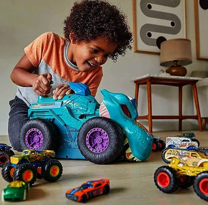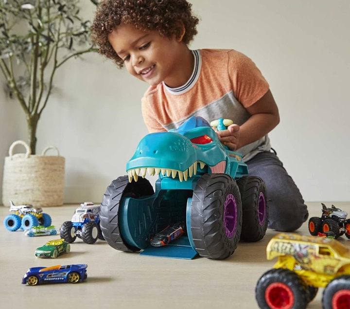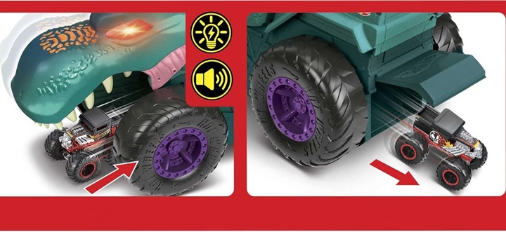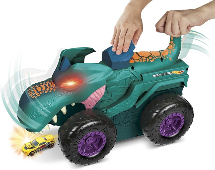 Hrozivý monster truck Hot Wheels W-Rex doslova požiera ostatné menšie autíčka. Obrovský terénny auťák s veľkými kolesami a zubatou dinosaurou hlavou W-Rexa behom okamihu zhltne každé auto, ktoré je pomalšie ako on. Svietiace diabolské oči pre vzrušujúci efekt. Mierka: 1:64.