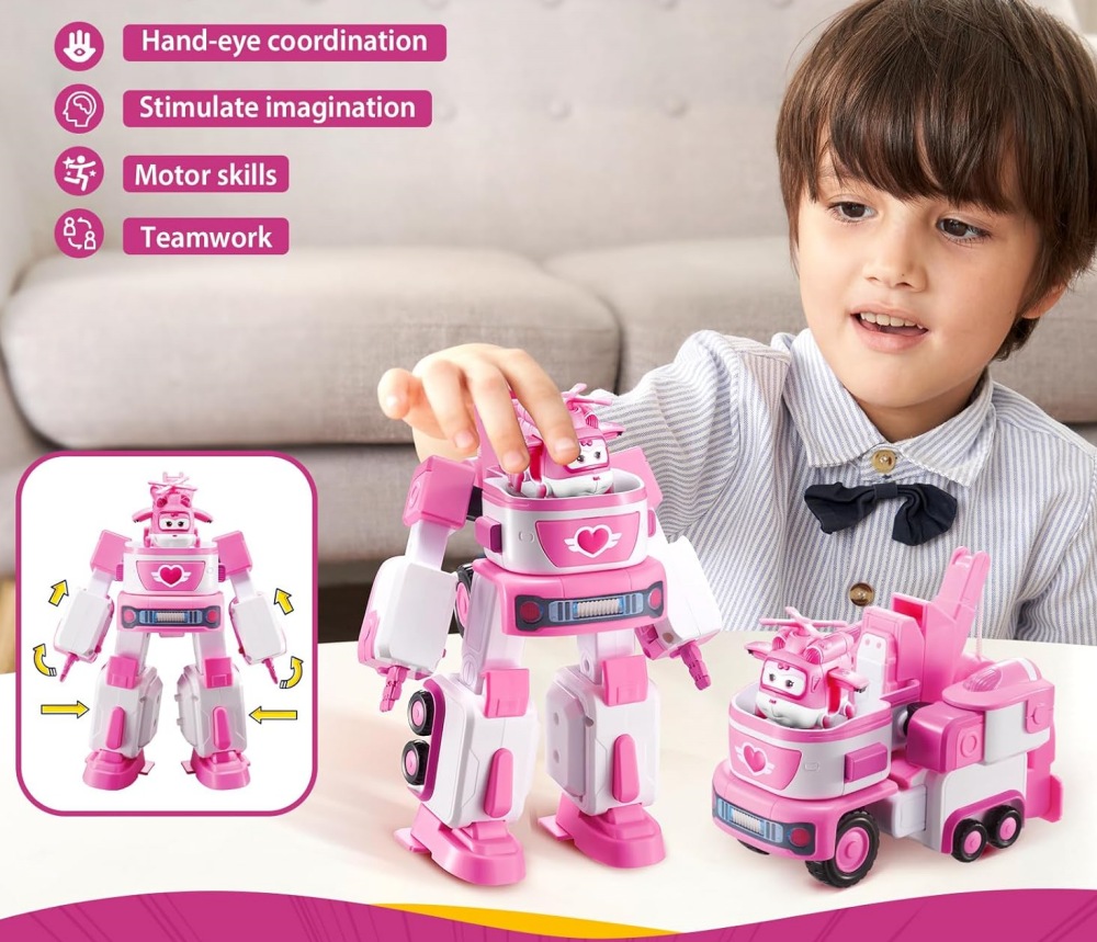 Super Wings transformujúce vozidlo s vrtuľníkem Dizzy, ktorého je možné z vozidla vybrať. Užite si tú pravú zábavu s kamarátmi obľúbeného detského seriálu.