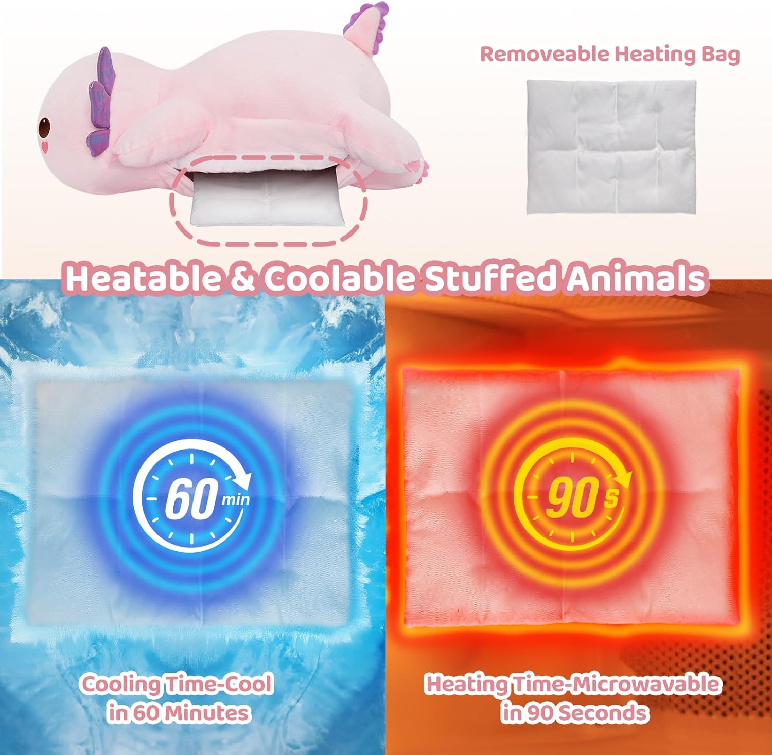 Plyšak obsahuje vyberateľnú vložku, ktorú je možné ohrievať v mikrovlnnej rúre a vytvoriť tak efekt jemného tepla. Môže byť tiež ochladená na prinášanie úľavy. Ideálne počas chladných nocí alebo horúceho leta, poskytuje pohodlie a upokojujúce tlak po celý rok.